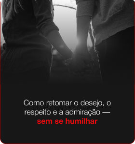 Não. Essa Masterclass é feita para você. O primeiro passo é individual. Quando você entende o que realmente está acontecendo, muda sua postura e sai do ciclo de dor, a dinâmica do relacionamento se transforma naturalmente — sem que ele sequer perceba que você começou esse processo.